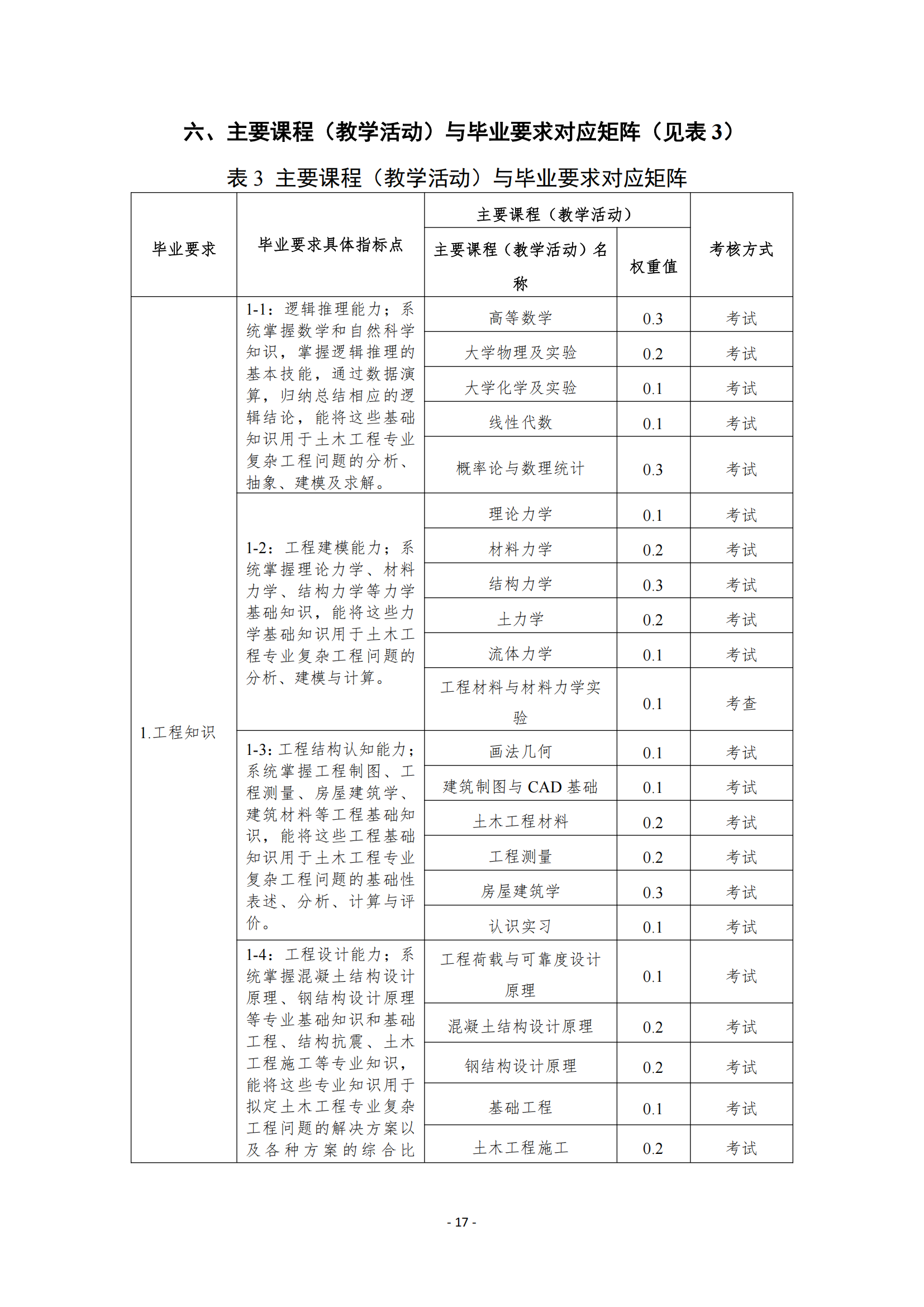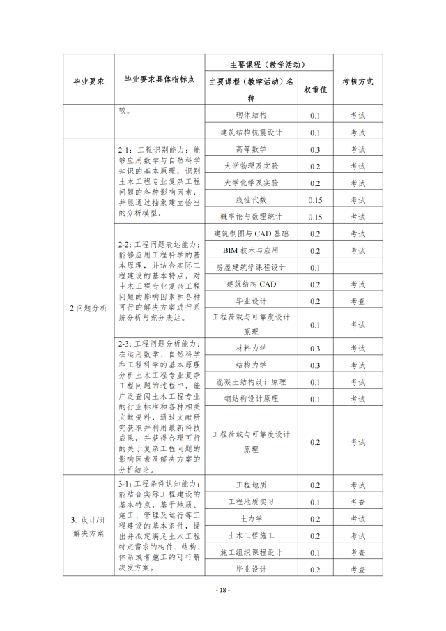 目标 3:能够面向基层解决实际工程技术问题,能够服务行业发展和地方经济;具备独立思考能力,具备分析和研究问题的能力,能够解决土木工程专业复杂的工程问题。