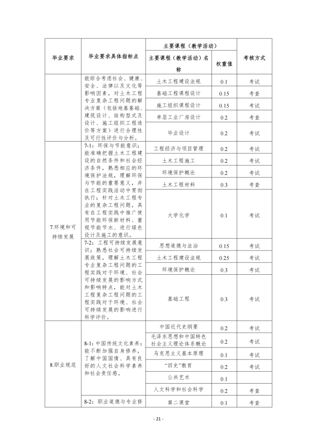- 环境和可持续发展:能够理解和评价针对土木工程专业的复杂工程问题的工程实践对环境、社会可持续发展的影响。
