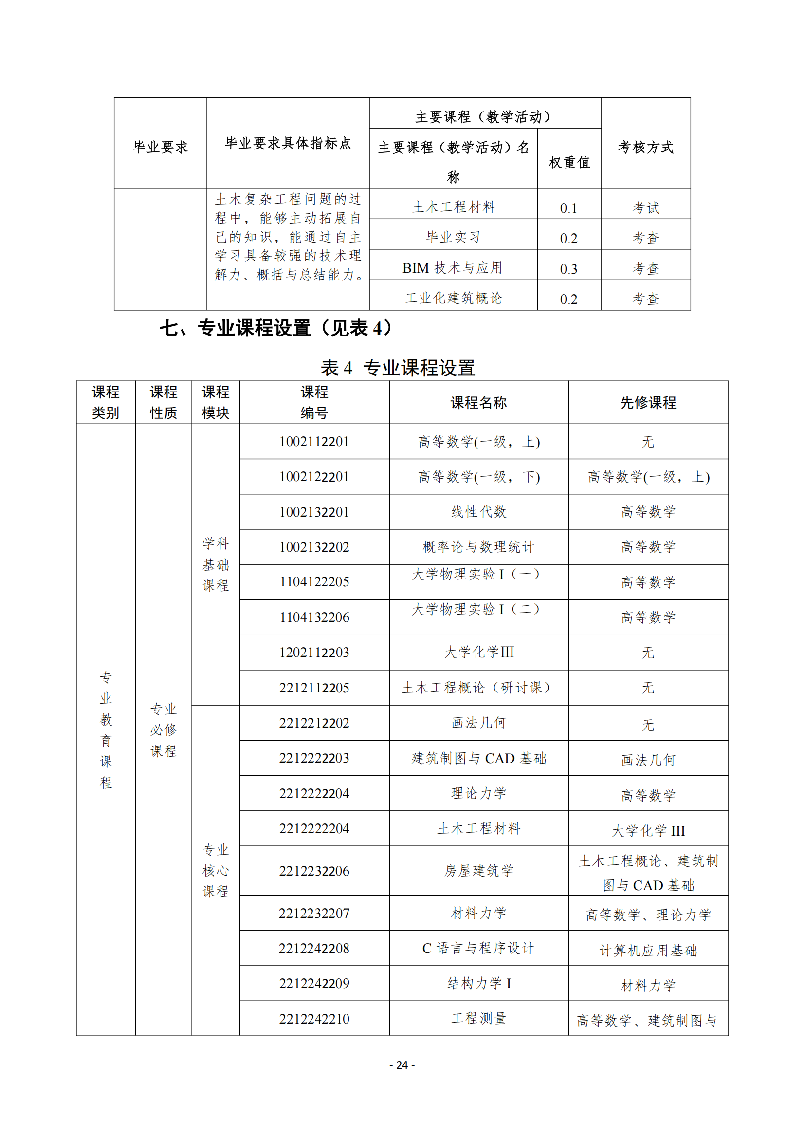 2024版土木工程本科专业人才培养方案