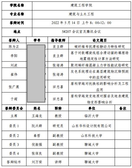 女同 2022届硕士研究生答辩预告(2022.5.14)