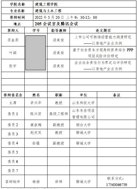 女同 2022届硕士研究生答辩预告(2022.5.20)