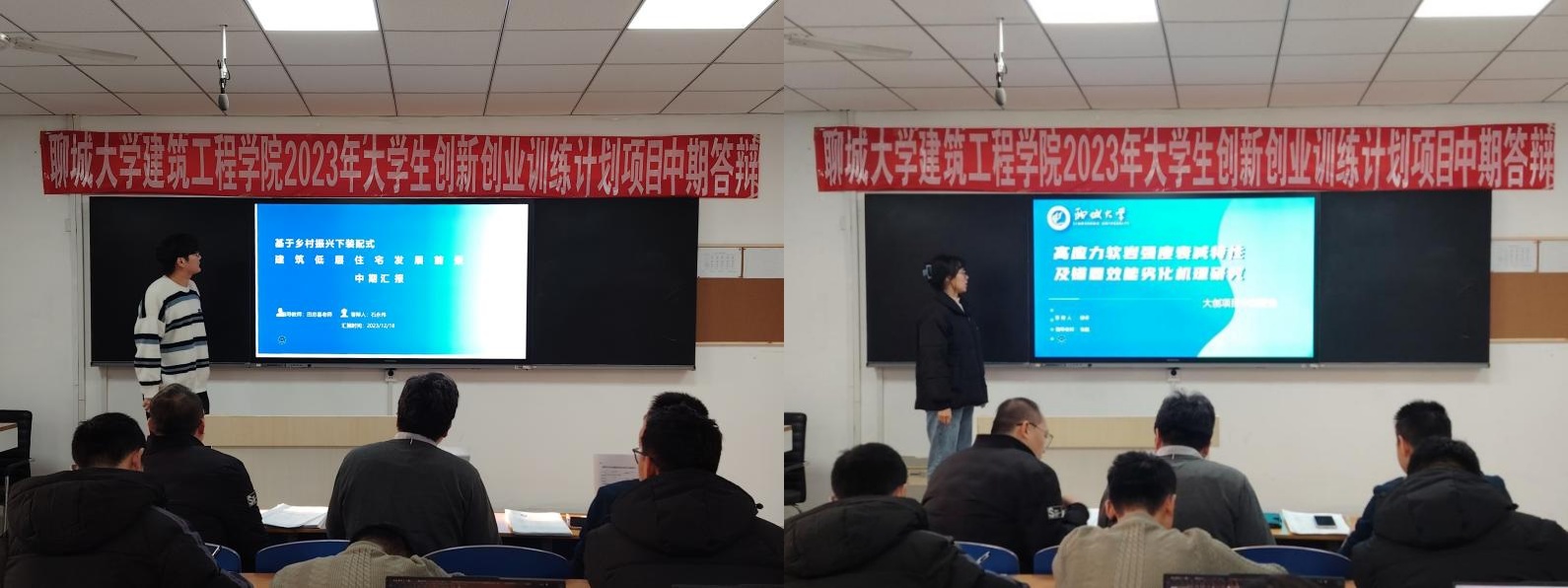 12月18日,女同 土木建筑学会于东校区5#A401举办2023年大学生创新创业训练计划项目中期答辩,活动邀请刘名名、刘万荣、张恒三位老师担任评委。