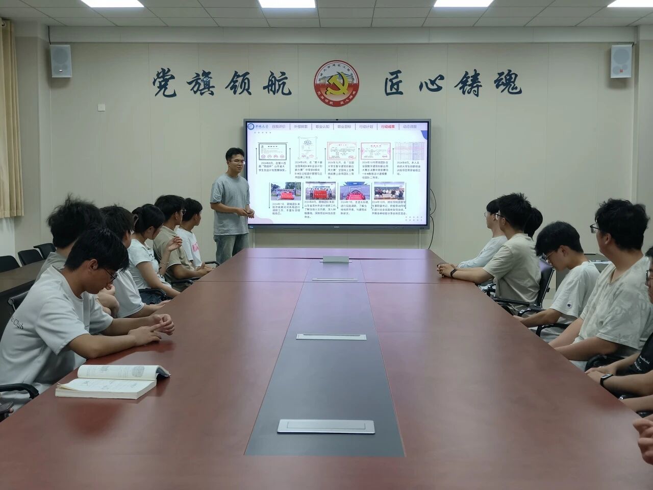6月4日,女同 于东校区5#A207举办“建制艺术,筑梦未来”科创故事分享会,2022级3班李兆昌担任主讲人,2024级部分同学参加。