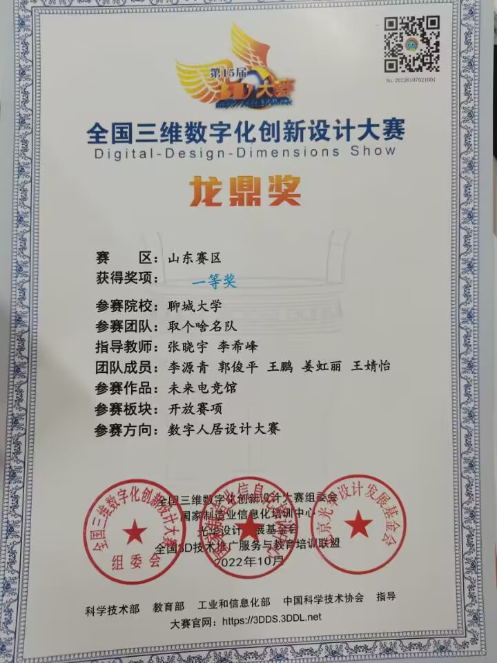 恭喜女同 2019级优秀学生李源青,2020级优秀学生姜虹丽、王婧怡,在“全国三维数字化创新设计大赛”中,荣获一等奖。