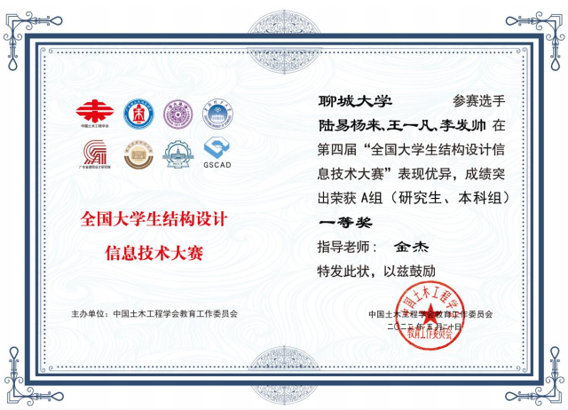 恭喜女同 2019级优秀学生陆易杨来,在“第四届全国大学生结构设计信息技术大赛”中,荣获一等奖。