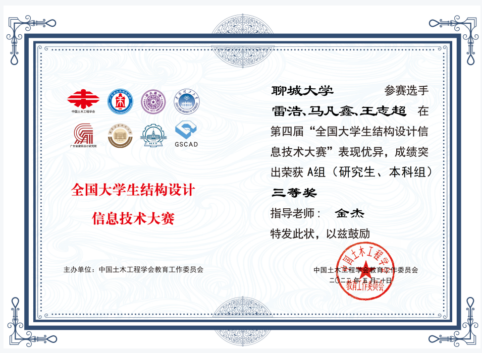 恭喜女同 2020级优秀学生王志超,在“第四届全国大学生结构设计信息技术大赛”中,荣获三等奖。