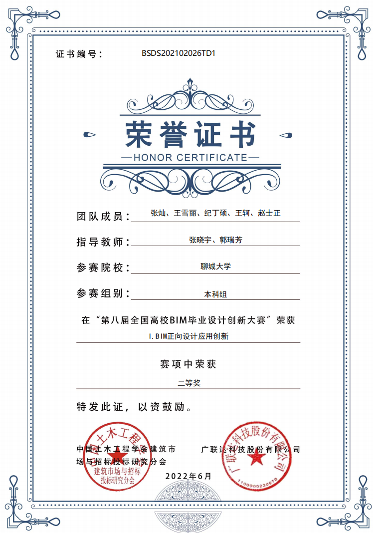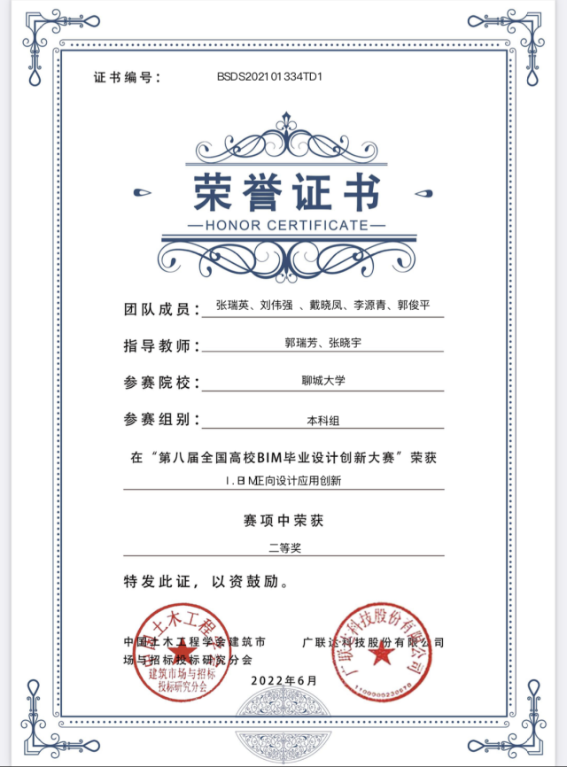 恭喜女同 2018级优秀学生刘伟强、2019级优秀学生李源青、张灿、王轲,在“第八届全国高校bim毕业设计创新大赛”I模块BIM正向设计应用创新中,荣获二等奖。