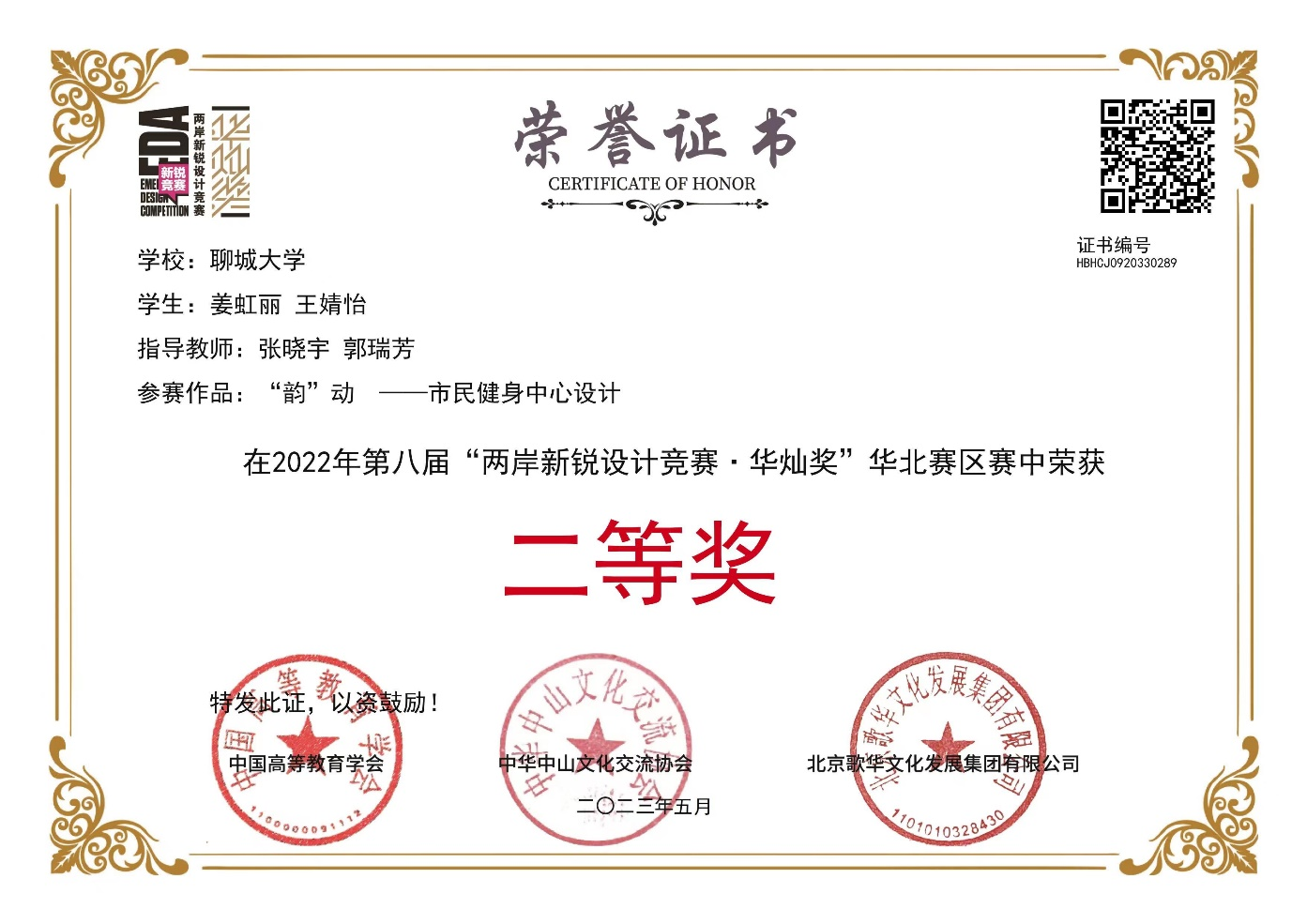 恭喜女同 2020级优秀学生姜虹丽、王婧怡,在第八届“两岸新锐设计竞赛·华灿奖”华北赛区中,荣获二等奖。
