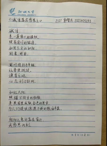 为让同学们深入了解感恩含义并将其真正地付诸实践,唤起同学们的感恩之心,培养同学们的感恩之情,6月4日,女同 于5#A309举办“诚信为本,感恩于心”征文活动。