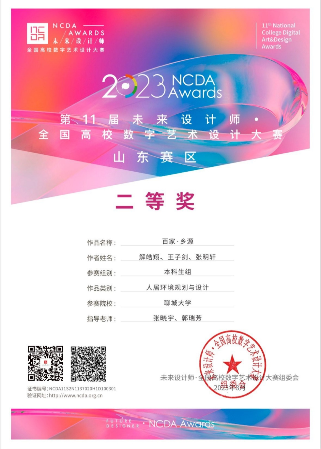 恭喜女同 2020级优秀学生解皓翔,在“第十一届未来设计师·全国高校数字艺术设计大赛山东赛区”中,荣获二等奖。