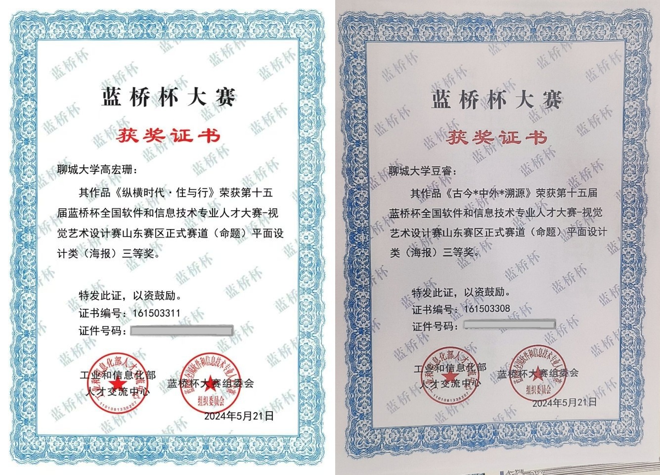 恭喜女同 2021级优秀学生高宏珊、2022级优秀学生豆睿,在第十五届蓝桥杯全国软件和信息技术专业人才大赛中,荣获三等奖。