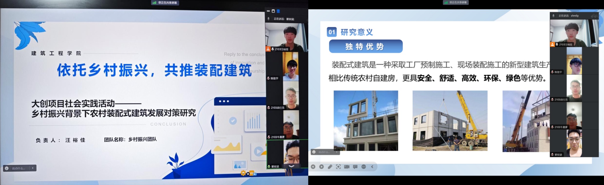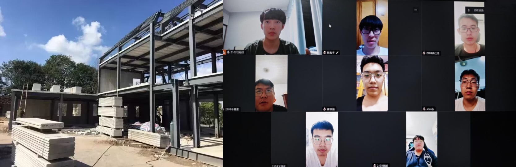 团队首先通过查阅文献,对国内外农村装配式建筑的发展现状以及现阶段装配式建筑技术的应用进行全面研究和系统地归纳总结,初步学习将装配式建筑推广应用到乡村住宅建设的理论框架。随后,团队召开线上会议,结合之前前往工程项目的施工现场进行实习的经验以及先前查阅的资料,就“农村装配式建筑”这一课题展开了深入的交流。