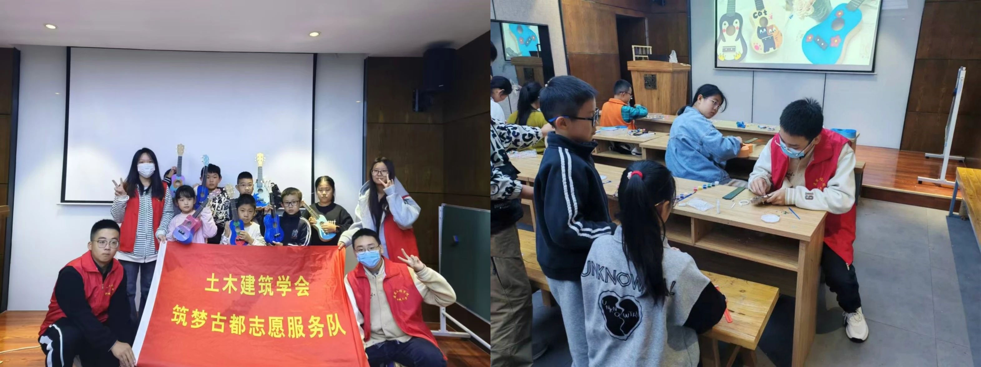 实践队员耐心指导小朋友调色、构图,鼓励他们充分发挥想象力,创作出独一无二的作品。小朋友用五彩画笔精心描绘,从可爱的卡通形象到绚丽的自然风光,每一笔都充满童真。音乐环节更是充满欢声笑语,实践队员向小朋友介绍了尤克里里的基本知识,而小朋友将自己的奇思妙想赋予尤克里里。当他们拨动琴弦,那不成调却充满童真的乐音,仿佛是梦想飞翔的声音。实践队员纷纷表示,感受到了与小朋友共同成长的快乐。