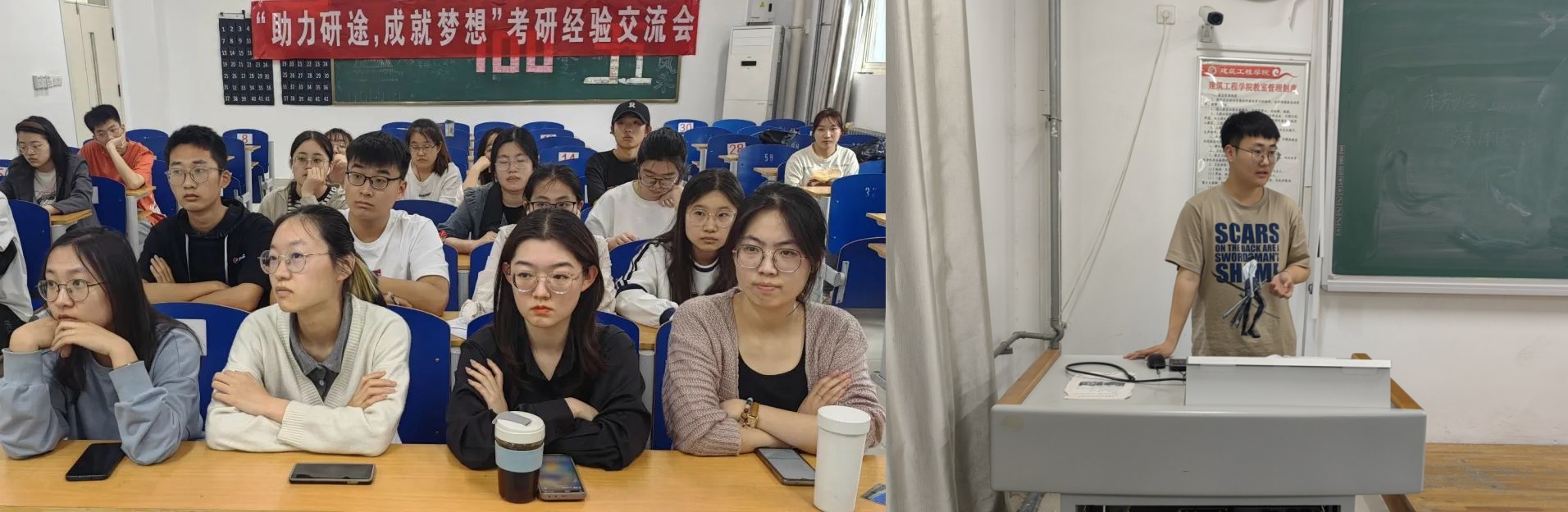 为了让女同 同学进一步了解考研情况,掌握考研技巧和策略,提高女同 建筑学学生考研率,女同 于5月11日举办建筑学专业考研经验交流会。本次活动特邀请2018级建筑学专业优秀考研学生代表刘杰、刘国鸾担当主讲人,分享自己的考研方法与学习经验,女同 部分建筑学学生参与聆听。