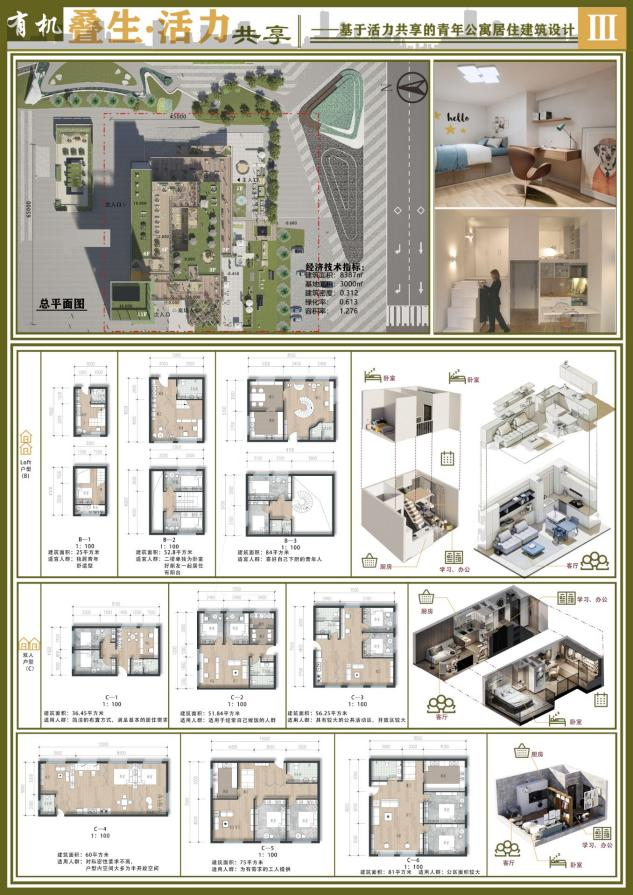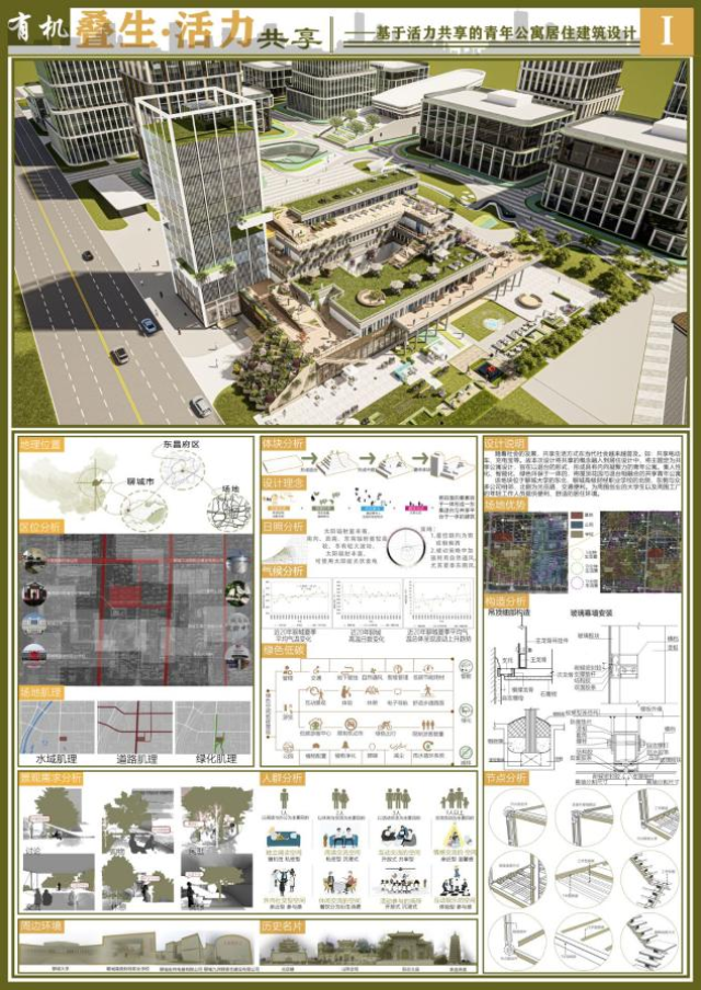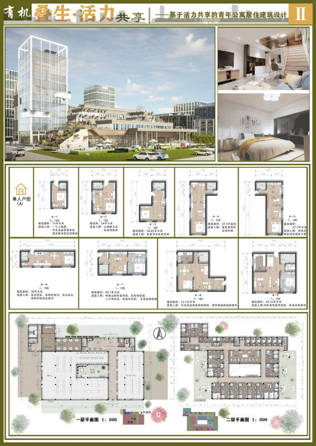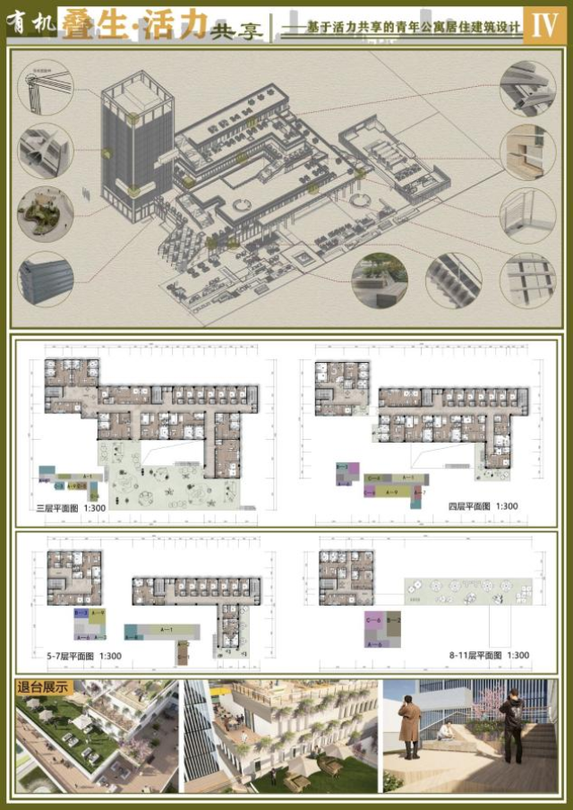 优秀作品三:有机叠生·活力共享——基于活力共享的青年公寓居住建筑设计(设计人:张悦 指导教师:刘静)