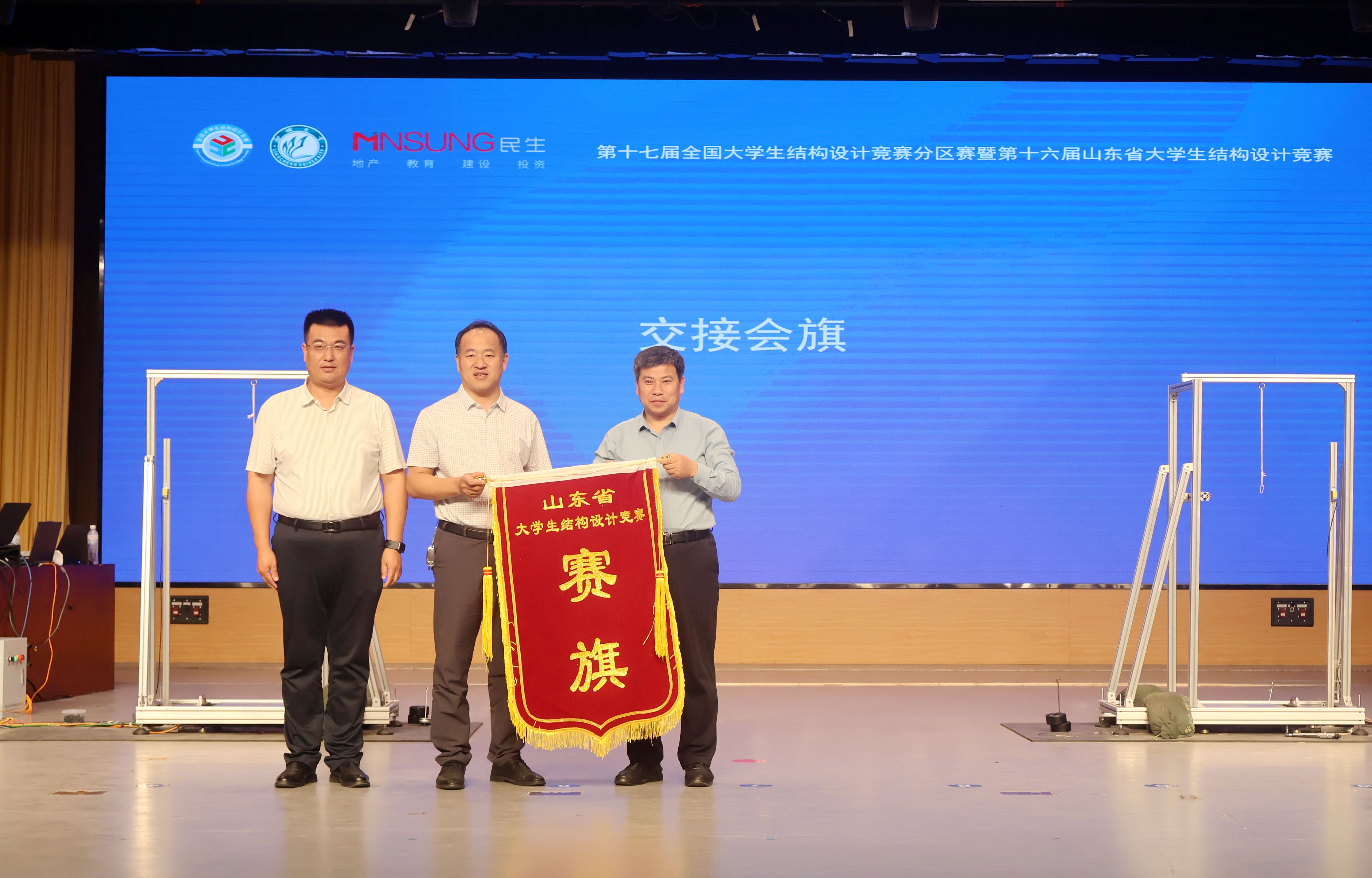 5月24日-26日,“民生杯”第十七届全国大学生结构设计竞赛分区赛暨第十六届山东省大学生结构设计竞赛在 女同 举行。大赛共评出一等奖15项,二等奖21项,三等奖25项,最佳创意奖1项,最佳制作奖1项,优秀组织奖11项。 女同 代表队成绩优异,分获一等奖、二等奖和三等奖各1项,并有1支队伍代表山东省参加国赛。 女同 交接会旗,中国石油大学(华东)成为下一届山东省大学生结构设计竞赛承办单位。