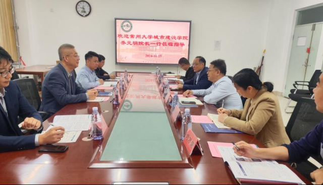 11月15日,常州大学城市建设学院院长乔元明一行到女同 考察,双方在A209会议室座谈交流。学院党委书记许奎杰、院长孟昭博、副院长田忠喜等参加座谈。