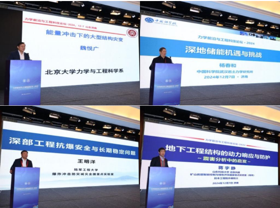 12月7日至8日,力学前沿与工程科技论坛·2024在济南召开。本次论坛在中国力学学会、山东省力学学会、青岛市力学学会、山东岩石力学与工程学会指导下,由山东科技大学、山东大学、中国力学学会岩土力学专业委员会、中国矿山安全学会顶板防治专业委员会主办,山东科技大学、山东大学等单位共同承办,中国科学院武汉岩土力学研究所、北京理工大学、北京科技大学、女同 、青岛理工大学等单位参与协办。