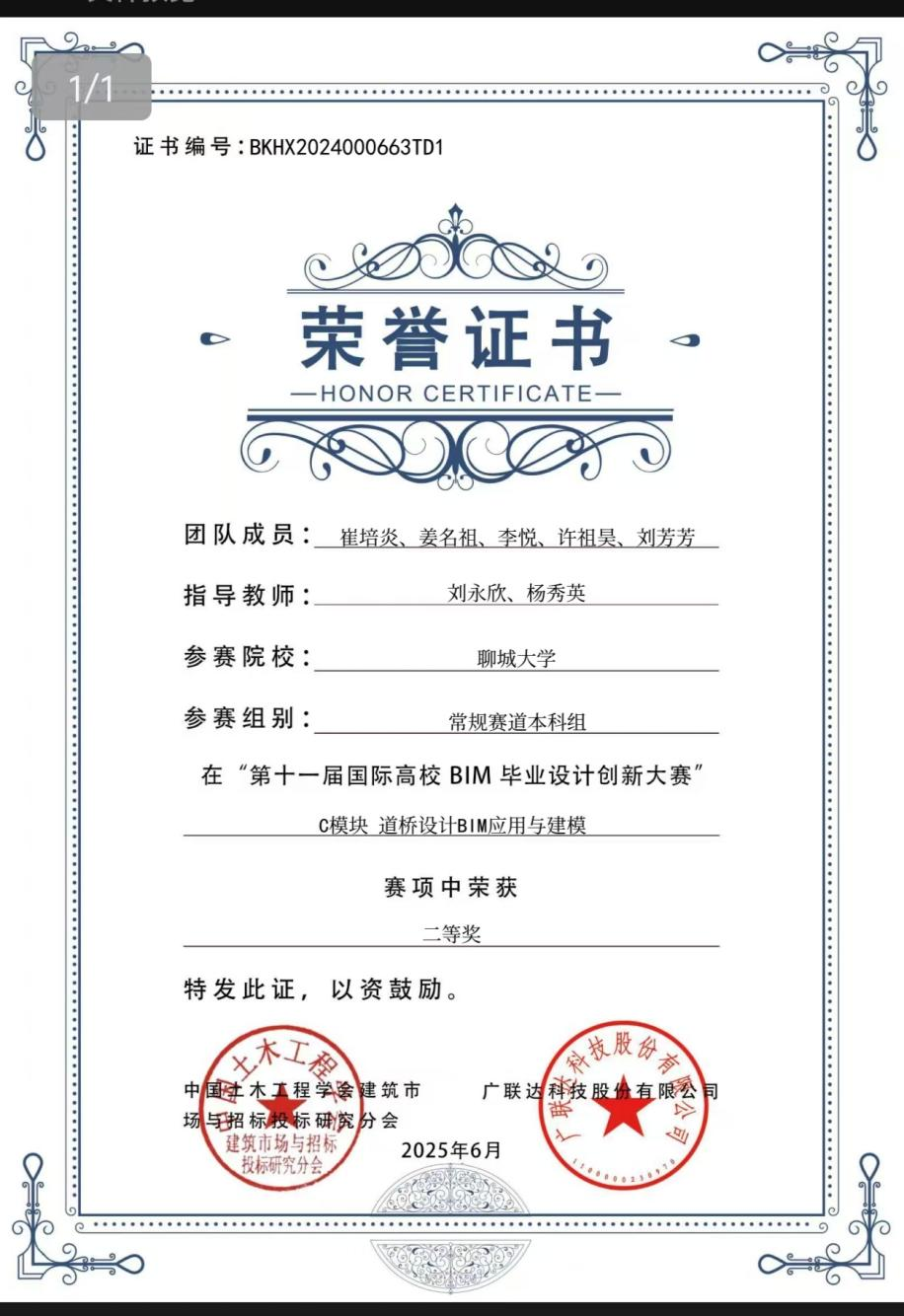 恭喜女同 2024级优秀学生刘芳芳在第十一届“国际高校BIM毕业设计创新大赛”中,荣获团队二等奖,2023级优秀学生张艳芳、2023级优秀学生鲁守金荣获团队三等奖。